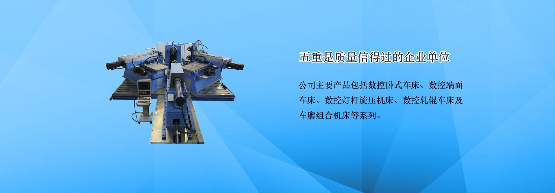 青島五重數(shù)控機床有限公司(原青島第五重型機械廠)是一家集科研,生產(chǎn),銷售為一體的數(shù)控機床生產(chǎn)企業(yè),主要產(chǎn)品:端面車床,數(shù)控端面車床,車銑復(fù)合機床,車磨組合機床,膠輥磨床,地磅遙控器,數(shù)控旋壓機。連續(xù)多年被評為青島市信用企業(yè)、質(zhì)量信得過單位。公司位于青島國際中小企業(yè)工業(yè)園,地理位置優(yōu)越,距流亭飛機場僅10公里,濟青、榮烏、青威等多條高速公路經(jīng)過,交通十分便利。... [MORE + ]